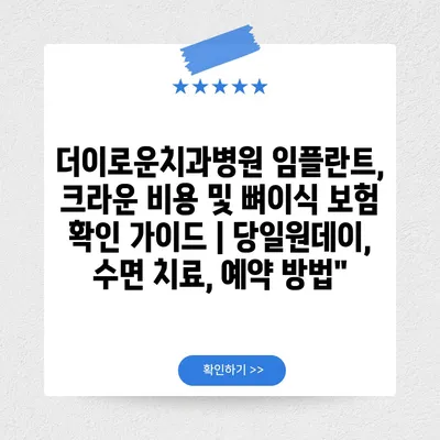 더이로운치과병원 임플란트, 크라운 비용 및 뼈이식 보험 확인 가이드 | 당일원데이, 수면 치료, 예약 방법”