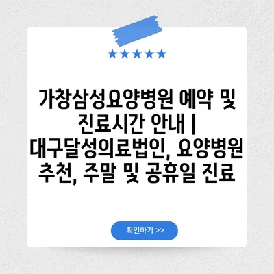 가창삼성요양병원 예약 및 진료시간 공지 | 대구달성의료법인, 요양병원 추천, 주말 및 공휴일 진료 에 대해 자주 묻는 질문 TOP 5