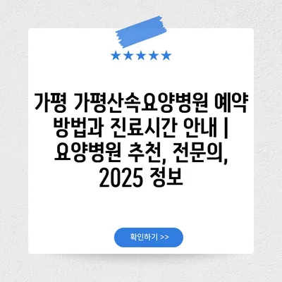 ✅ 가평산속요양병원의 진료시간과 예약 방법을 자세히 알아보세요.