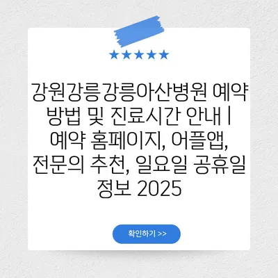 강원강릉강릉아산병원 예약 방법 및 진료시간 공지 | 예약 홈페이지, 어플앱, 전연락 추천, 일요일 공휴일 정보 2025 에 대해 자주 묻는 질문 TOP 5