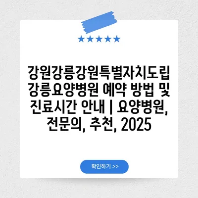✅ 강릉요양병원의 예약 방법과 진료 시간을 지금 바로 확인해 보세요.