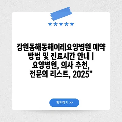 강원동해동해이레요양병원 예약 방법 및 진료시간 공지 | 요양병원, 의사 추천, 전연락 리스트, 2025″ 에 대해 자주 묻는 질문 TOP 5