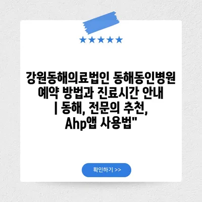 ✅ 동해동인병원 예약 방법과 진료시간을 지금 바로 알아보세요!