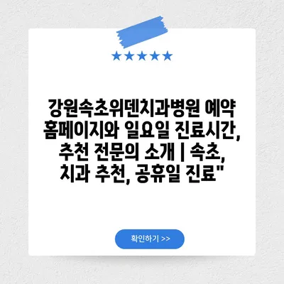 ✅ 강원속초위덴치과병원의 진료시간과 예약 방법을 알아보세요.