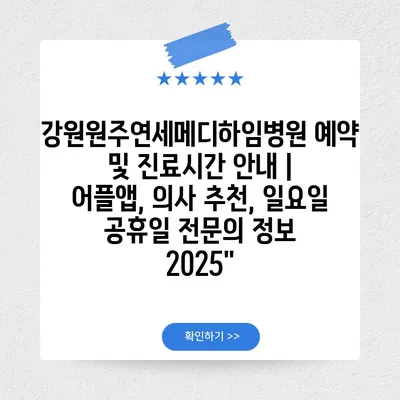 강원원주연세메디하임병원 예약 및 진료시간 공지 | 어플앱, 의사 추천, 일요일 공휴일 전연락 정보 2025에 대해 자주 묻는 질문 TOP 5