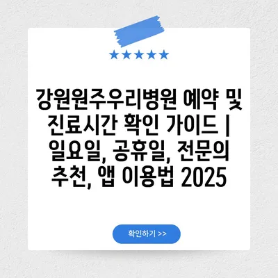 강원원주우리병원 예약 및 진료시간 확인 설명서 | 일요일, 공휴일, 전연락 추천, 앱 이용법 2025