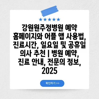 강원원주정병원 예약 홈페이지와 어플 앱 사용법, 진료시간, 일요일 및 공휴일 의사 추천 | 병원 예약, 진료 공지, 전연락 정보, 2025에 대해 자주 묻는 질문 TOP 5