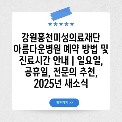 강원홍천미성의료재단 아름다운병원 예약 방법 및 진료시간 공지 | 일요일, 공휴일, 전연락 추천, 2025년 새소식 에 대해 자주 묻는 질문 TOP 5