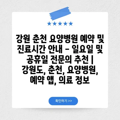 강원 춘천 요양병원 예약 및 진료시간 공지 – 일요일 및 공휴일 전연락 추천 | 강원도, 춘천, 요양병원, 예약 앱, 의료 정보 에 대해 자주 묻는 질문 TOP 5