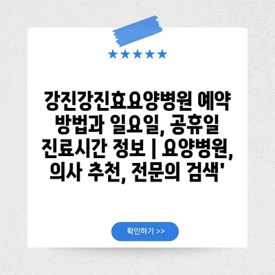 강진강진효요양병원 예약 방법과 일요일, 공휴일 진료시간 정보에 대해 알아보겠습니다.