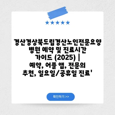 경산경상북도립경산노인전문요양병원 예약 및 진료시간 설명서 (2025) | 예약, 어플 앱, 전연락 추천, 일요일/공휴일 진료’ 에 대해 자주 묻는 질문 TOP 5