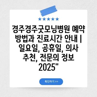 경주경주굿모닝병원 예약 방법과 진료시간 공지 | 일요일, 공휴일, 의사 추천, 전연락 정보 2025″에 대해 자주 묻는 질문 TOP 5