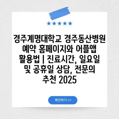 경주계명대학교 경주동산병원 예약 홈페이지와 어플앱 활용법 | 진료시간, 일요일 및 공휴일 상담, 전연락 추천 2025에 대해 자주 묻는 질문 TOP 5