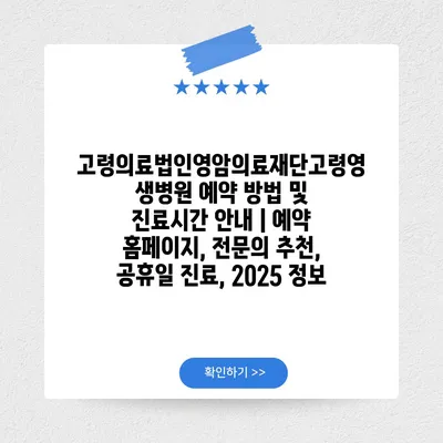 ✅ 고령영생병원의 예약 방법과 진료시간을 지금 바로 알아보세요!