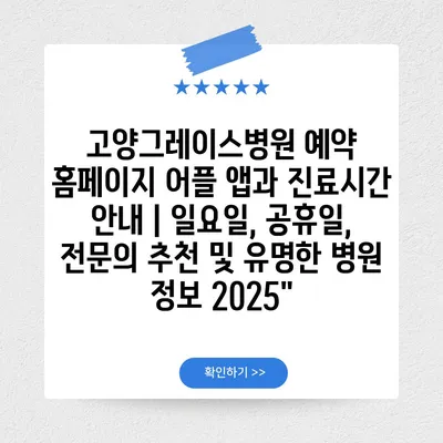 고양그레이스병원 예약 홈페이지 어플 앱과 진료시간 공지 | 일요일, 공휴일, 전연락 추천 및 유명한 병원 정보 2025