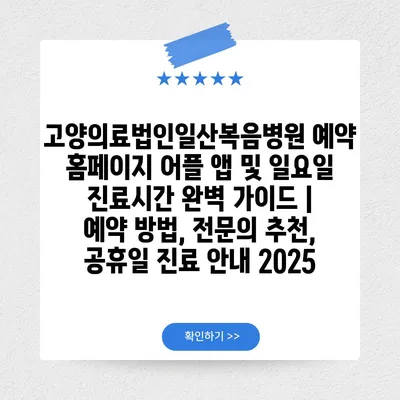 고양의료법인일산복음병원 예약 홈페이지 어플 앱 및 일요일 진료시간 완벽 설명서 | 예약 방법, 전연락 추천, 공휴일 진료 공지 2025에 대해 소개합니다.