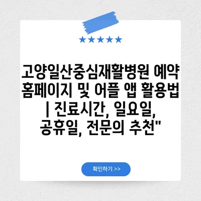 ✅ 고양일산중심재활병원 예약 방법을 쉽게 알아보세요.