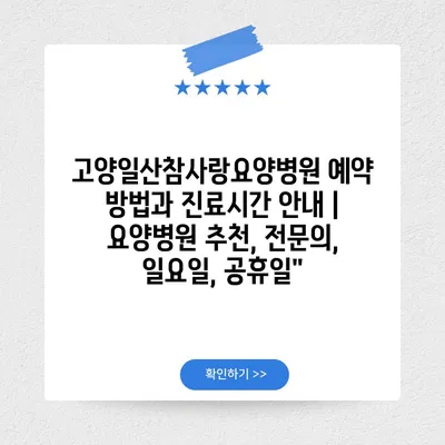 ✅ 고양일산참사랑요양병원의 예약 방법을 지금 바로 알아보세요!