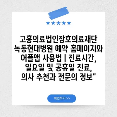 고흥의료법인장호의료재단 녹동현대병원 예약 홈페이지와 어플앱 사용법 | 진료시간, 일요일 및 공휴일 진료, 의사 추천과 전연락 정보에 대해 자주 묻는 질문 TOP 5