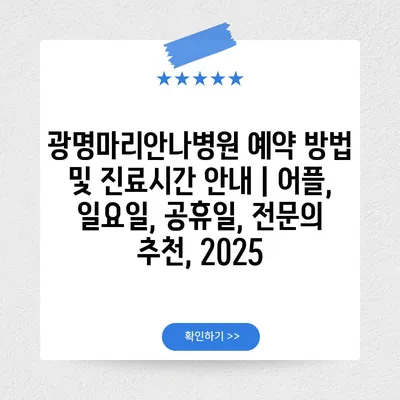 광명마리안나병원 예약 방법 및 진료시간 공지 | 어플, 일요일, 공휴일, 전연락 추천, 2025 에 대해 자주 묻는 질문 TOP 5