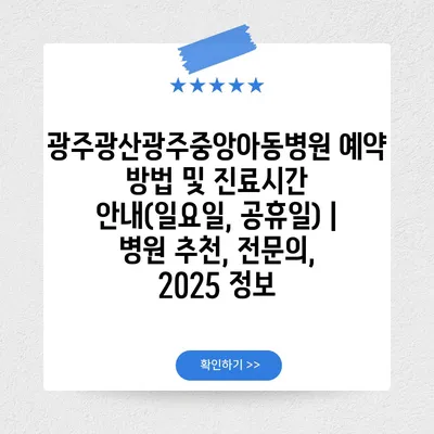 ✅ 광주광산광주중앙아동병원의 진료시간과 예약 방법을 지금 바로 알아보세요!
