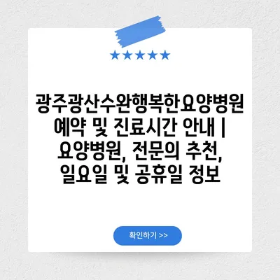 ✅ 광주광산수완행복한요양병원의 진료시간과 예약 방법을 자세히 알아보세요.