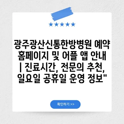 광주광산신통한방병원 예약 홈페이지 및 어플 앱 공지 | 진료시간, 전연락 추천, 일요일 공휴일 운영 정보에 대해 자주 묻는 질문 TOP 5