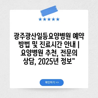 ✅ 광주광산일등요양병원의 예약 및 진료시간을 쉽게 알아보세요!