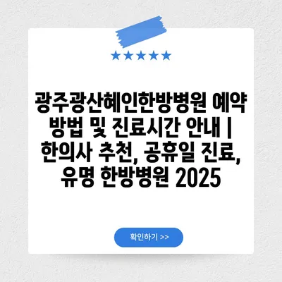 광주광산혜인한방병원 예약 방법 및 진료시간 공지 | 한의사 추천, 공휴일 진료, 유명 한방병원 2025 에 대해 자주 묻는 질문 TOP 5