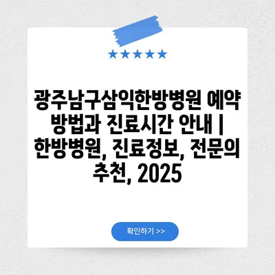✅ 광주남구삼익한방병원의 예약 방법과 진료시간을 지금 바로 알아보세요!
