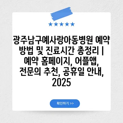 광주남구예사랑아동병원 예약 방법 및 진료시간 총정리 | 예약 홈페이지, 어플앱, 전연락 추천, 공휴일 공지, 2025 에 대해 자주 묻는 질문 TOP 5