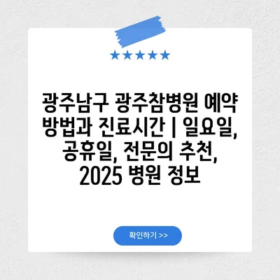 광주남구 광주참병원 예약 방법과 진료시간 | 일요일, 공휴일, 전연락 추천, 2025 병원 정보 에 대해 자주 묻는 질문 TOP 5