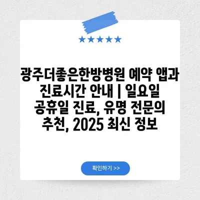 광주더좋은한방병원 예약 앱과 진료시간 공지 | 일요일 공휴일 진료, 유명 전연락 추천, 2025 최신 정보 에 대해 자주 묻는 질문 TOP 5
