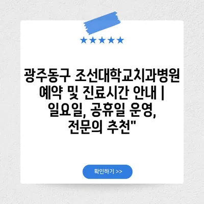 광주동구 조선대학교치과병원 예약 및 진료시간 안내 | 일요일, 공휴일 운영, 전문의 추천”