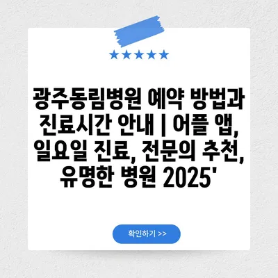 ✅ 광주동림병원의 진료시간과 예약 방법을 지금 확인해 보세요.