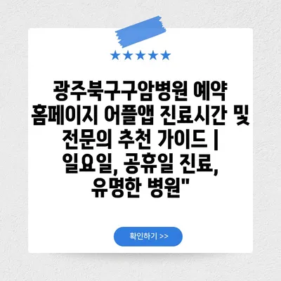 광주북구구암병원 예약 홈페이지 어플앱 진료시간 및 전문의 추천 가이드 | 일요일, 공휴일 진료, 유명한 병원”