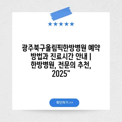 광주북구올림픽한방병원 예약 방법과 진료시간 공지 | 한방병원, 전연락 추천, 2025″ 에 대해 자주 묻는 질문 TOP 5