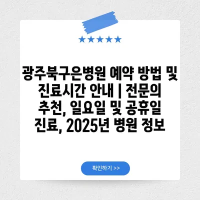 광주북구은병원 예약 방법 및 진료시간 안내 | 전문의 추천, 일요일 및 공휴일 진료, 2025년 병원 정보