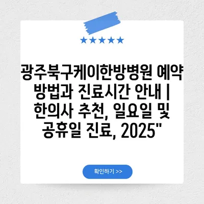 광주북구케이한방병원 예약 방법과 진료시간 공지 | 한의사 추천, 일요일 및 공휴일 진료, 2025″ 에 대해 자주 묻는 질문 TOP 5