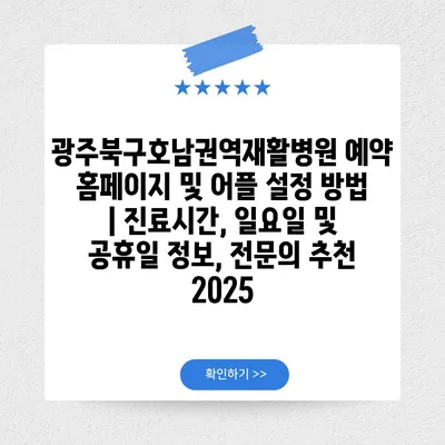 광주북구호남권역재활병원 예약 홈페이지 및 어플 설정 방법 | 진료시간, 일요일 및 공휴일 정보, 전연락 추천 2025에 대해 알아보겠습니다.