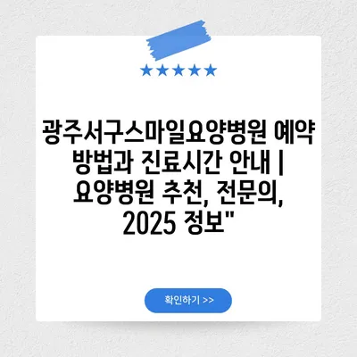 ✅ 광주서구스마일요양병원의 예약 방법과 진료 시간에 대한 상세 정보를 알아보세요.