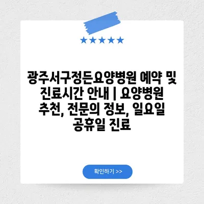 ✅ 광주서구정든요양병원의 진료시간과 예약 방법을 알아보세요.