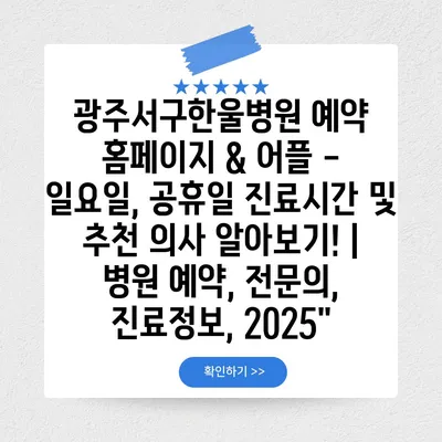 광주서구한울병원 예약 홈페이지 & 어플 – 일요일, 공휴일 진료시간 및 추천 의사 알아보기! | 병원 예약, 전연락, 진료정보, 2025″ 에 대해 자주 묻는 질문 TOP 5