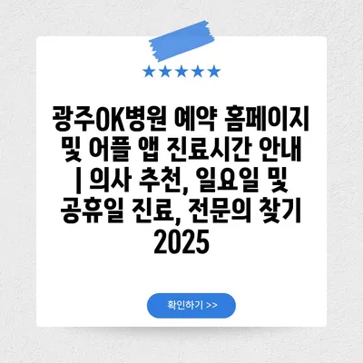 광주OK병원 예약 홈페이지 및 어플 앱 진료시간 공지 | 의사 추천, 일요일 및 공휴일 진료, 전연락 찾기 2025는 보다 나은 건강 관리를 위한 유용한 정보의 공간입니다.
