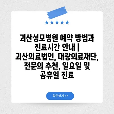 ✅ 괴산성모병원의 진료 시간과 예약 방법을 자세히 알아보세요.