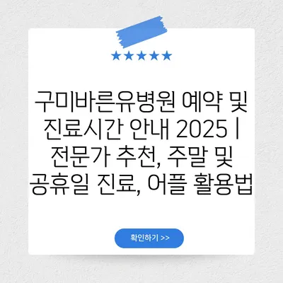 구미바른유병원 예약 및 진료시간 공지 2025 | 전문가 추천, 주말 및 공휴일 진료, 어플 활용법 에 대해 자주 묻는 질문 TOP 5