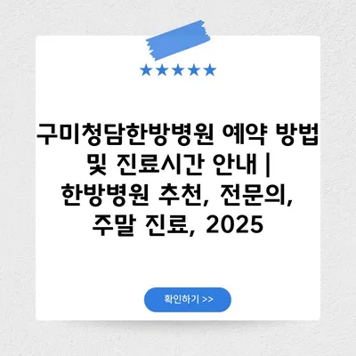 구미청담한방병원 예약 방법 및 진료시간 공지 | 한방병원 추천, 전연락, 주말 진료, 2025 에 대해 자주 묻는 질문 TOP 5
