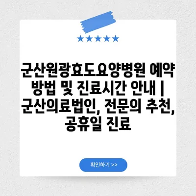 ✅ 군산원광효도요양병원 예약 방법을 자세히 알아보세요.