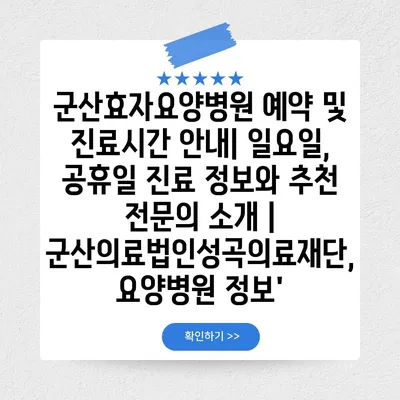 ✅ 군산효자요양병원의 진료 시간 및 예약 방법을 알아보세요.