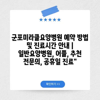 ✅ 군포미라클요양병원의 예약 방법을 지금 바로 알아보세요.